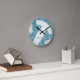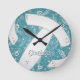 This boho volleyball themed wall clock features the realistic image of a volleyball with teal & white panels that has a doodle pattern of paisleys, flowers and feathers in white covering the volleyball's teal panels plus overlying clock face numerals - personalise with the athlete's name - by katz_d_zynes