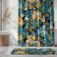 Floral Doodles Aqua Teal Mustard Black White Shower Curtain