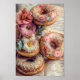 Showcasing exquisitely adorned floral doughnuts, this AI Art captivates with its delectable and artfully crafted confections. The image depicts an array of delicious doughnuts adorned with intricate floral designs, exuding charm and culinary artistry.
