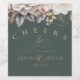 This wedding suite with it's lush, dramatic florals from creamy white to blush pink, gold swirl accents and beautiful watercolor backgrounds, creates an elegant, romantic vibe, giving just a hint of what guests can expect on your big day. This floral 'Cheers to the love and happiness of newlyweds' design provides a template to easily add both your names and wedding date in gold on a Spanish green background. Search ID1022 to see all the products in this wedding suite.