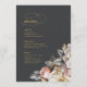 This wedding suite with it's lush, dramatic florals from creamy white to blush pink, gold swirl accents and beautiful watercolor backgrounds, creates an elegant, romantic vibe, giving just a hint of what guests can expect on your big day. This coordinating reception menu, with a corner floral and gold script text, provides a template to easily add your menu selections, initials and wedding date. Search ID1022 to see all the products in this wedding suite.
