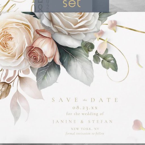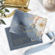 This wedding suite with it's lush, dramatic florals from creamy white to blush pink, gold swirl accents and beautiful, dusty blue watercolor backgrounds, creates an elegant, romantic vibe, giving just a hint of what guests can expect on your big day. This eye-catching RSVP card on a watercolor background, provides a template to easily add your QR code, website and online reply information in luxurious gold text. Search ID1022 to see all the products in this wedding suite.