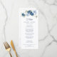 Our wedding menu cards features dusty blue and white flowers, eucalyptus leaves with modern typography on white background. Easily edit the details by clicking the "Personalise" button.