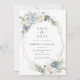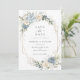 Floral Dusty Blue White Geometric Gold Wedding Save the Date Card, Elegant Greenery Wedding Dave the Date Card