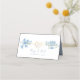 Bohemian, modern, elegant, floral, periwinkle wildflowers dusty blue wedding place card with name and table number, gold rope heart monogram and simple handwritten script.