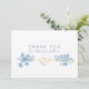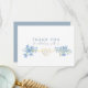 Modern, elegant, boho floral periwinkle wildflowers dusty blue wedding thank you card, with gold rope heart monogram and custom text back.