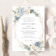 Floral Dusty Blue White Geometric Gold Wedding Invitation Card, Elegant Greenery Wedding Invitation