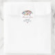 The sticker is made on wonderful paper and had no problem sticking to the bag that I purchased to put it on. I wanted to find a design that would be cute for the bride and groom and this one fit the bill as it has cute "bees" buzzing around and the wedding was taking place in a town called "Bee Cave". The packaging was great and protected the stickers. The website is easy to navigate and there are so many color choices. I had no problem finding a color that the bride was using on everything else selected. The design was adorable and there were many to choose from. You can make the figure as larger or smaller and you can place the photo and writting whereever you want to in the sticker. The printing is fabulous..better than expected.