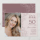 Floral Dusty Pink Surprise Photo 50th Birthday Invitation