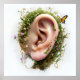 Life doesn’t end—it listens. This surreal anatomical ear is wrapped in soft moss, blooming wildflowers, and golden vines, as a butterfly flutters near like a forgotten whisper.