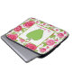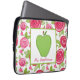 An electronics bag for teachers featuring a hot pink roses floral pattern background. Personalise with your name under green apple.