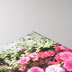 Beautiful pink flowers nestled in this garden with greenery and delicate white floral sprays behind them.