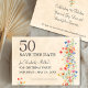 Mark this milestone birthday with elegance using our 50th Birthday Save the Date card featuring a delicate watercolor floral design. This beautifully crafted card highlights the number "50" in bold, balanced with a soft, pastel floral arrangement on the right side. Personalise with the celebrant’s name and event details to ensure your guests reserve the date for this special occasion. Perfect for any elegant and memorable 50th birthday celebration. Enjoy!