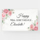 Stylish pink roses, feminine floral Happy 90th birthday party decorations - name personalized banner.