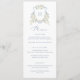 Floral Elegant Dusty Blue White Wedding Crest Menu Card. Elegant Floral White Greenery Wedding Menu