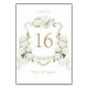 Floral Elegant White Hydrangea Gold Crest Table Number