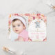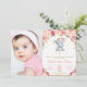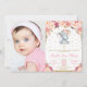 Floral Elephant Christening Baptism Girl Photo Invitation