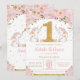 Floral Elephant Twin Girls 1st Birthday Party Invitation
