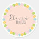 This lovely floral New Baby sticker features the text - Eleven months written in modern type surrounded by cute colourful flowers. Perfect for your eleven month old baby.