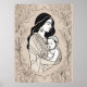 Floral Embrace Mother and Baby Line Art Print