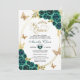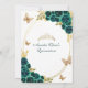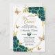 Floral Emerald Gold Tiara Butterfly Quinceañera Invitation