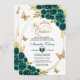 Floral Emerald Gold Tiara Butterfly Mis Quinceañera Invitation