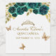 Floral Emerald Gold Tiara Butterfly Quinceañera Wine Label