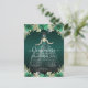 Floral Emerald Green Princess Gown Dress Glitter Sparkle 15th Birthday Quinceanera Invitation