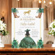 Celebrate a one-of-a-kind Quinceañera with a Floral Emerald Green and Gold Boots & Horse invitation. This unique design combines elegant floral details with rustic charm, featuring vibrant emerald green hues and shimmering gold accents. With stylish cowboy boots and a majestic horse, it’s perfect for a country-inspired quinceañera that blends tradition with a modern twist. Ideal for a celebration filled with personality and elegance, this invitation invites guests to a memorable event where beauty, adventure, and joy take centre stage.