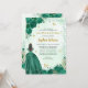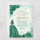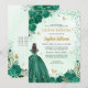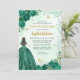 Floral Emerald Green Gold Princess Quinceanera Invitation