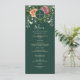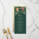 Modern, elegant, rustic, floral, emerald green wedding menu, with gold rope heart and simple calligraphy script.