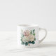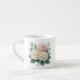 This lovely espresso cup is shown in white with a pretty floral hydrangeas watercolor print in shades of blush pink.