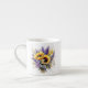 This lovely espresso cup is shown in white with a pretty floral sunflowers and lavender watercolor print.