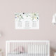 Rustic white florals and eucalyptus greenery decorate the top edge above and elegant simplistic typography for a small wedding group of 30 guests with a seating chart of 3 tables of 10. The header text is curved at the top. Easily personalise with your guests' names and you can change the table numbers to your own words if preferred. Try to keep to a similar number of characters, but if you do slip over to another line, you can make the text smaller via the scale down option via the Customize further option. You can also choose this If you wish to change font styles and colors.