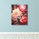 A vivid close-up of blooming peonies and roses, showcasing soft flowing petals in shades of pink, peach, and white against a dark background. This beautiful floral artwork brings life and elegance to any room.