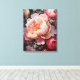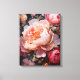 A vivid close-up of blooming peonies and roses, showcasing soft flowing petals in shades of pink, peach, and white against a dark background. This beautiful floral artwork brings life and elegance to any room.