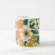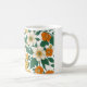 Start your day with a splash of sunshine. This white ceramic mug features a vibrant, retro-inspired floral design in warm tones of orange, yellow, and soft white, accented by lush green leaves. The bold graphic style evokes vintage wallpaper and mid-century charm, making it perfect for cosy mornings, teacher gifts, or aesthetic desk setups. Durable, dishwasher-safe, and designed to brighten any space.