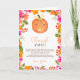 A little pumpkin is on the way! Celebrate your baby shower this fall autumn cute orange baby pumpkin with a pacifier and floral watercolor frame with bright pink and orange flowers thank you baby shower card.