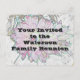 Announce your family reunion with an inexpensive postcard featuring an artistic flower as the backdrop. The flower displays colours of pink and green along with a light blue background. The back of the postcard displays date, location information, and rsvp contact. Personalised all text quickly and easily.