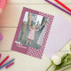 Beautiful family's Day card featuring a photo frame with cute little flowers on the front on solid pink background. The back of the card has a beautiful message for your family.