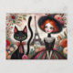 Floral Fantasies with a Feline Friend in Paris Postcard