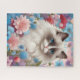 She sits among the flowers, so regal and serene Her fur is soft and fluffy, and her eyes are ocean blue She rules this land of colors, with grace and dignity She knows the secrets of the gardens and the magic they can do. She whispers to the petals, and they hear her voice She strokes them with her paw, and they smile. Immerse yourself in the harmony of nature's melody, where a cat with sapphire eyes sits among the delicate notes of blooming flowers. Unravel the petals and compose your visual masterpiece with this mesmerizing puzzle.