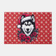 Floral Festive Husky Dog with Santa Hat Xmas Puppy Doormat