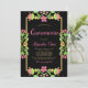 Floral Fiesta Black Gold Quinceanera Photo Invitation