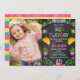 Cute taco twosday themed second birthday invitation for a little girl featuring various colorful floral, tacos and other Mexican items on an almost black background. This colorful taco twosday second birthday invitation also features your little girl's photo and is ideal for a fiesta taco themed second birthday party for a little girl.