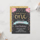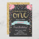 Floral First birthday invite Girl Pink Gold Roses