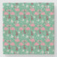 Floral flamingo seamless pattern pink green stone coaster