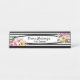 Floral Flowers Black and White Striped Name Plate Office Desk Sign