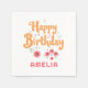 Floral Flowers Happy Birthday Handlettering Napkins. Celebrate a special girl's birthday with these charming personalised napkins! Featuring a hand-drawn floral design, cheerful "Happy Birthday" text in playful orange script, and a custom name. Ideal for daughters, nieces, granddaughters, or friends.