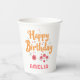 Floral Flowers Happy Birthday Handlettering Paper Cups. Celebrate a special birthday with this charming personalised party cups! Featuring a hand-drawn floral design, cheerful "Happy Birthday" text in playful orange script, and a custom name. Ideal for daughters, nieces, granddaughters, or friends.
